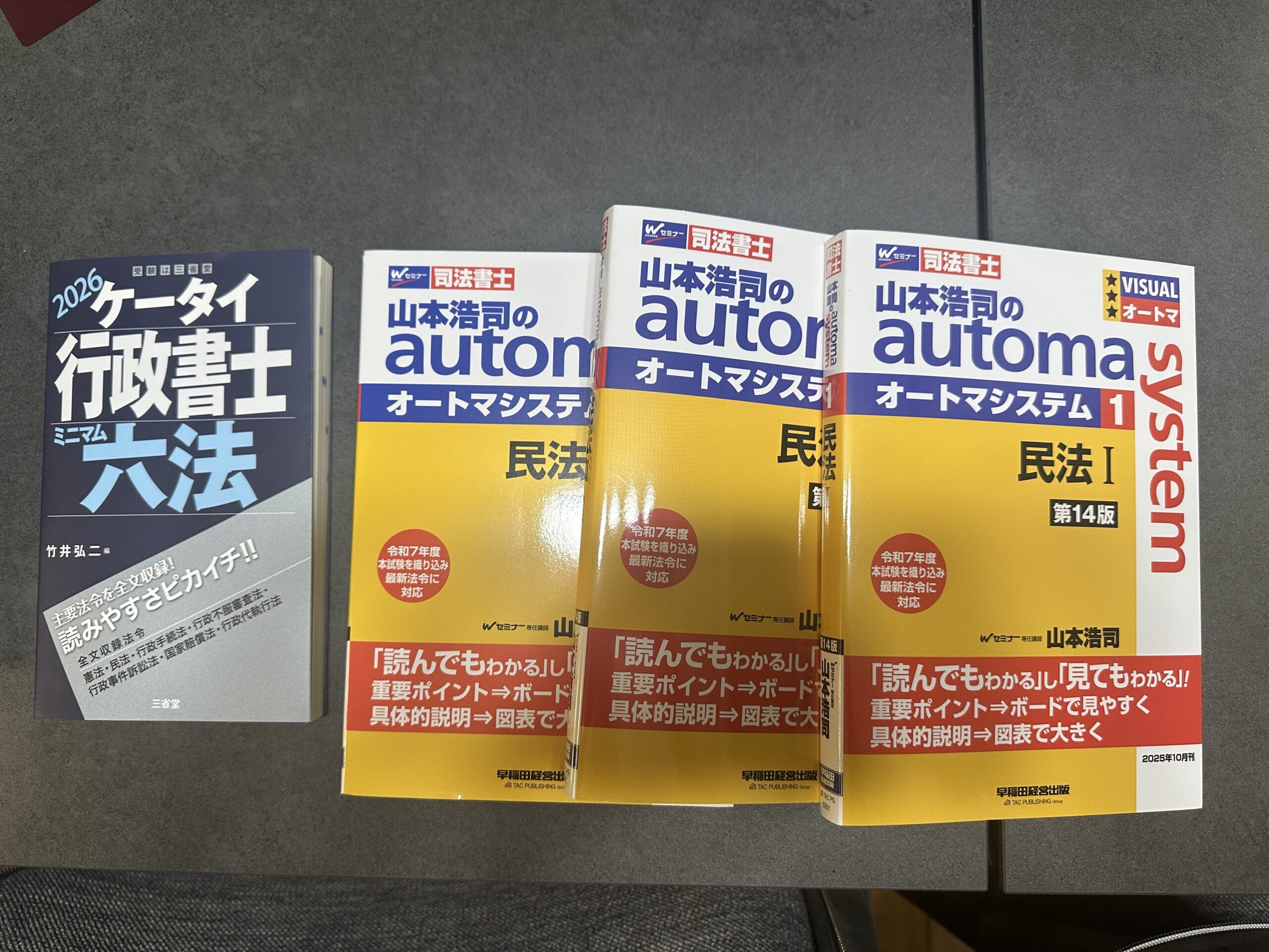 行政書士のテキストや問題集がまだ令和8年度分が発売していないため、